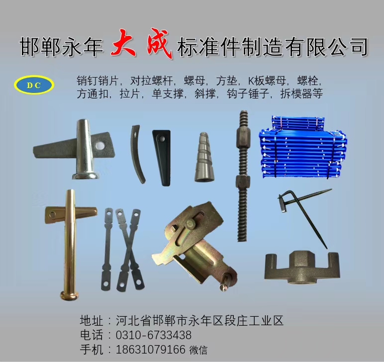 點擊數(shù):48382019-07-08 15:54:18 來源: 鋁模板銷釘_鋁模板配件_建筑扣件螺栓_扣件螺絲生產(chǎn)廠家-永年區(qū)大成標(biāo)準(zhǔn)件制造有限公司